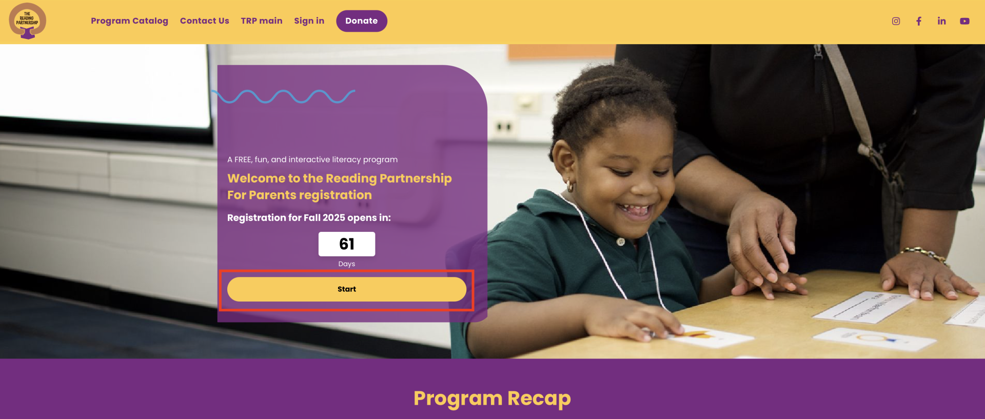 On the registration or program page, you will see the status of the program. If registration is open, you can start your application right away. If it is not open, an email sign-up form will be available to notify you when registration begins.